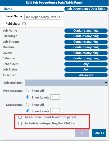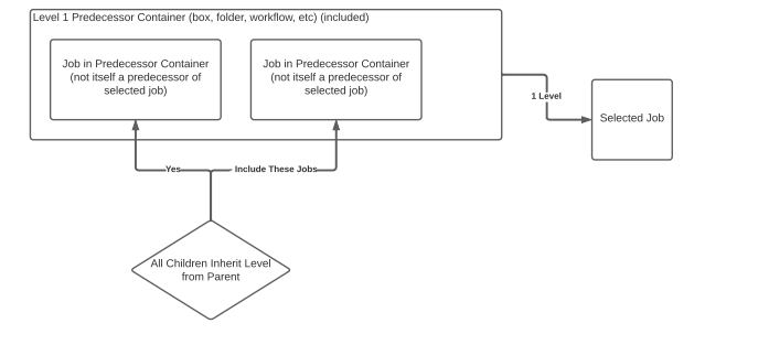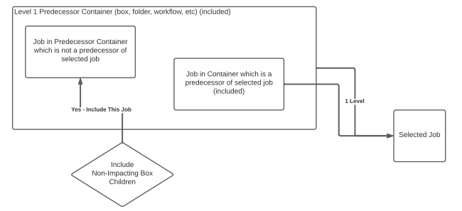 This means all children within a box/group will be included even if there is no direct impact on target job, and they will have the same level as the parent.