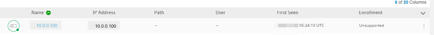 [Search] - [Database] - [Entities] で検索すると IP アドレスがホスト名として表示され、[Enroll] が "Unsupported" と表示されるエントリーがある。