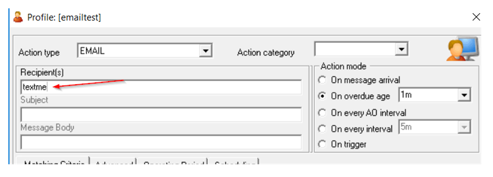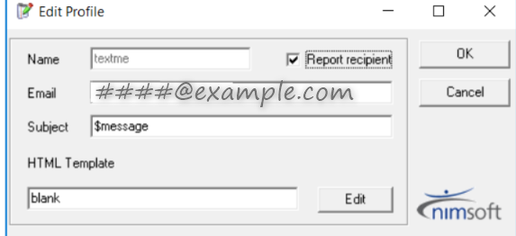 Click OK and save it and then in your NAS Auto Operator that does the email sending, you want to send it to the same profile name (like "textme" in my example) instead of putting an email address directly here. emailgtw will automatically pick this up and send it to the email address(es) defined in the profile there using the given template.