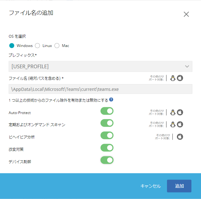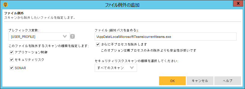 SEP/SES が Microsoft Teams に干渉するのを防ぐには、以下の除外項目を追加してください。