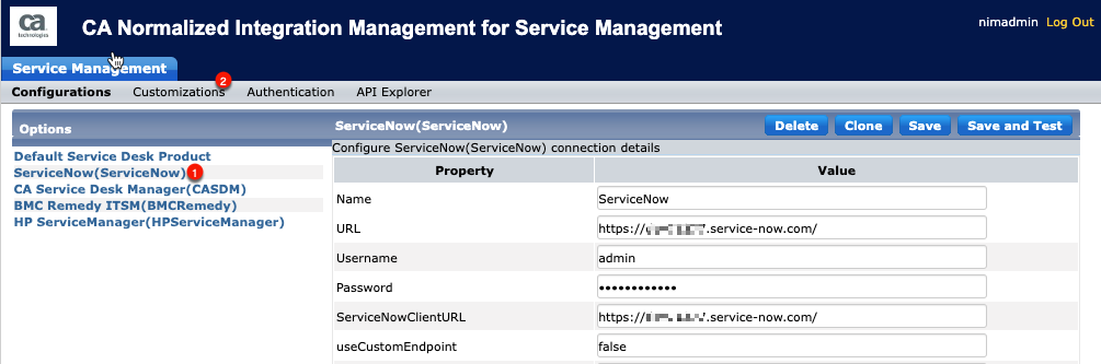 To access the Field Mappings access the CA NIM GUI on the OneClick Server that is performing he SNOW integration