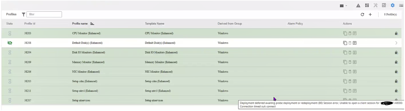 MCS group profiles were initially deployed to a robot a few weeks back but profiles show an Hourglass when viewing the Monitoring Config status on the device itself