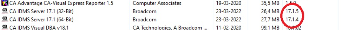 1. In the name of the install .exe files that come in the PTF's .zip file, e.g. IDMS Server 32 bit 17.1.5.exe and IDMS Server 64 bit 17.1.5.exe .