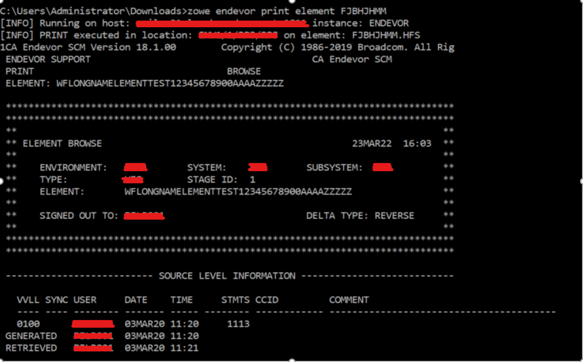 C:\Users\Administrator\Downloads>zowe endevor list elements WFLONGNAMELEMENTTEST12345678900AAAAZZZZZ