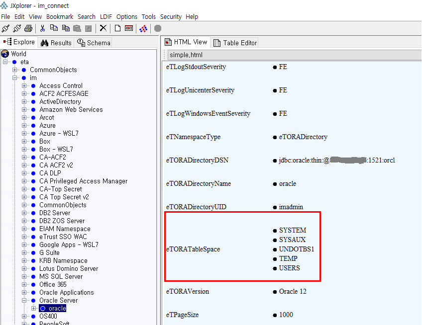 I created a tablespace called TIMS with the query below in the oracle server and checked the tablespace in ldap after exploring, but it was not explored.