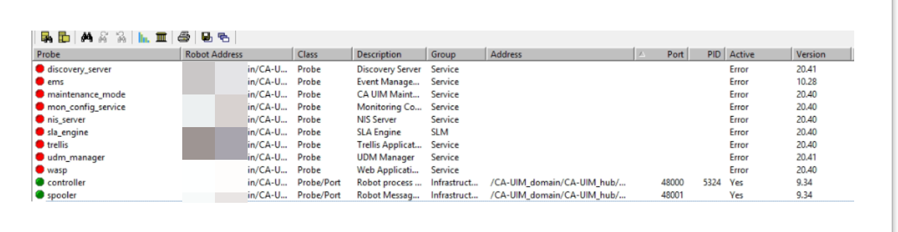 Restart the Primary robot and check if the probes connecting to database