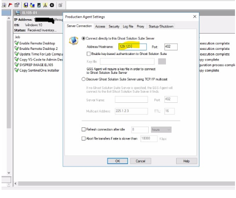 Then from the Production Agent Settings Screen under Server Connection change the Address/Host to the IP address of the new GSS server as shown here: