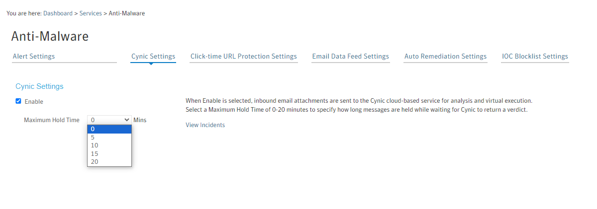 If you receive emails (Cynic applicable) which are suspected to be malicious after processed by Cynic, this can be an indication to increase the hold time and observe for similar emails flagged by Cynic.