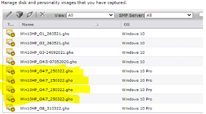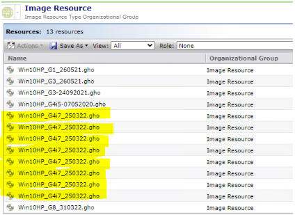 1. Check under "Manage > All resources > Software Component > Image Resource" and see if there were multiple entries. In this example, the duplicate image is called "Win10HP_G4i7_250322.gho"