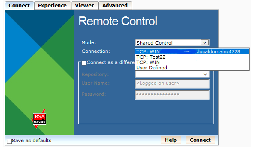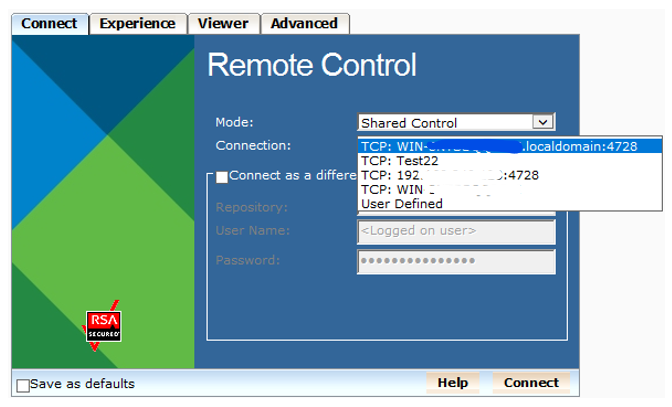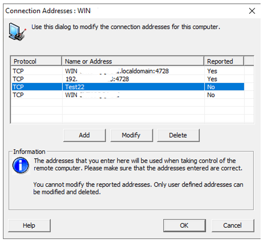 When a machine is renamed, DSM Explorer will show the Agent with the new name correctly, but when trying to initiate a Remote Control session (using DSM Explorer or RC Viewer), the old address could still be shown on the drop down: