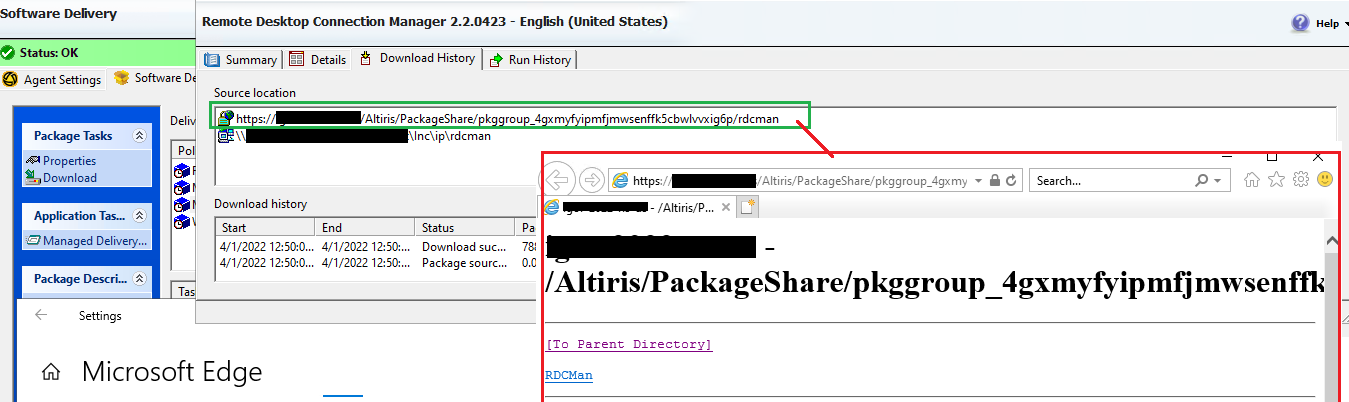 When viewing a Software Delivery source location in the Symantec Management Agent GUI, clicking a link opens in Internet Explorer instead of in the default operating system browser as seen here: