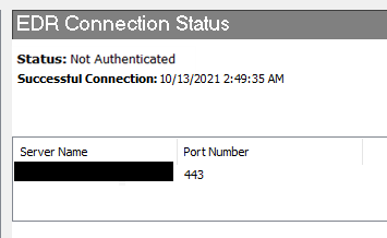 SEP の[トラブルシューティング]セクションを確認すると、EDR 接続のステータスが "未認証" と表示されている。