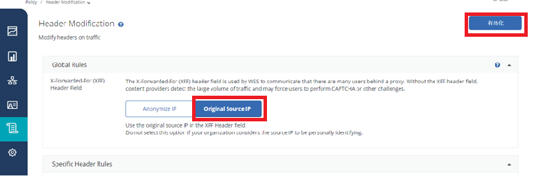 'Original Source IP'に変更後、[有効化]ボタンを押して設定を有効化してください。