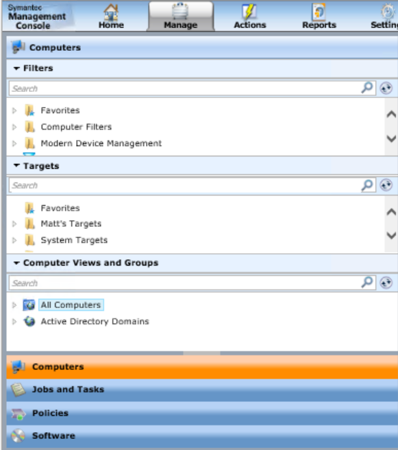 The Manage Computer, Manage Jobs and Tasks, Manage Policies, and Manage Software views are not working.