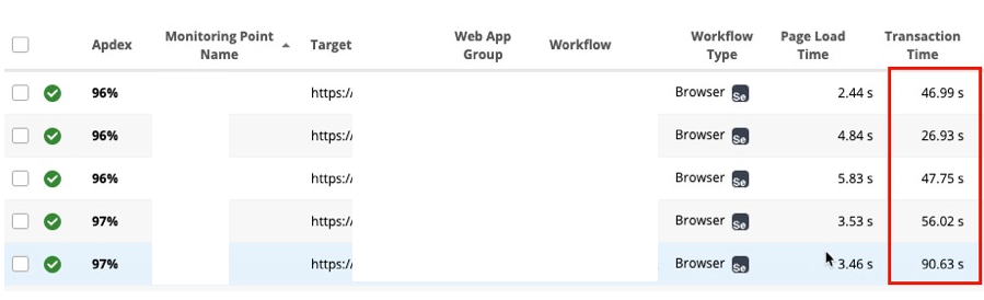 The combined transaction times for all the WebPaths on the individual monitoring points was approaching