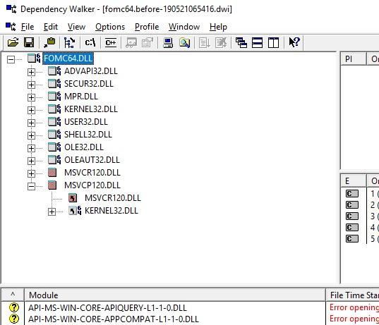 この方法で解決しない場合、2つ目の方法でサードパーティユーティリティ「Dependency Walker」を使用して不足している依存関係を探し、関連のあるアプリケーションを再インストールまたは、修復を行ってください。
