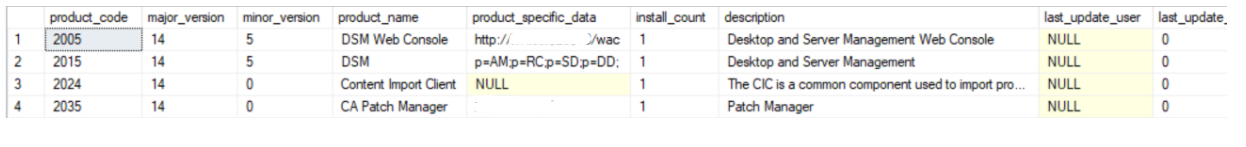 product_specific_data for product_code=2015, indicates which plugins are installed on the Domain Manager.