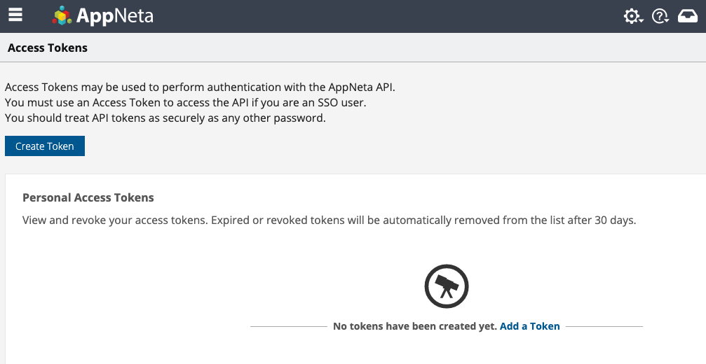 API Access Tokens can be used to Access the AppNeta API. In order to create the Access Tokens