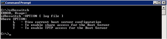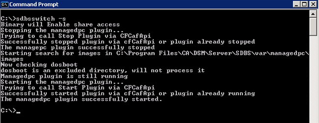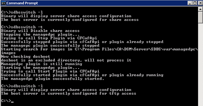 Reconfigure the boot server for share access if this was the original configuration using the command 'sdbsswitch -s'.