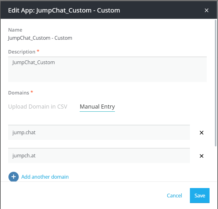 "jump.chat" domain is not included in the configuration of "Jump Chat" App.