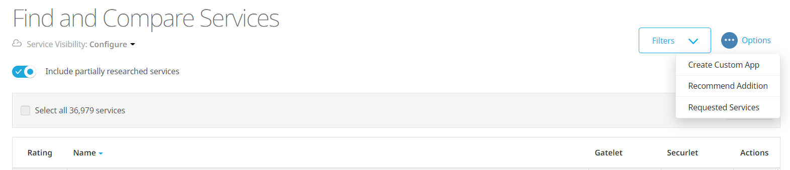 This is done in CloudSOC Audit / "Find and Compare Services"