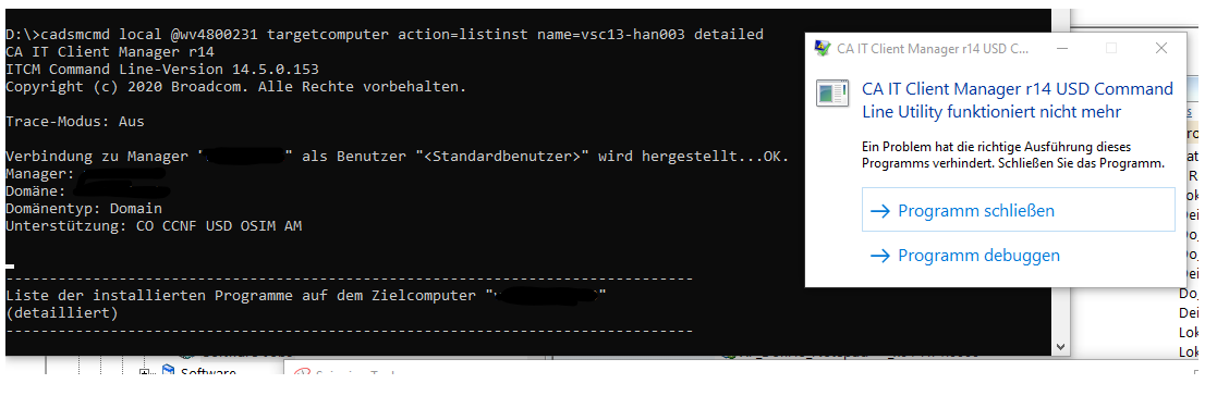Faulting application path: E:\CA\DSM\bin\cadsmcmd.exe