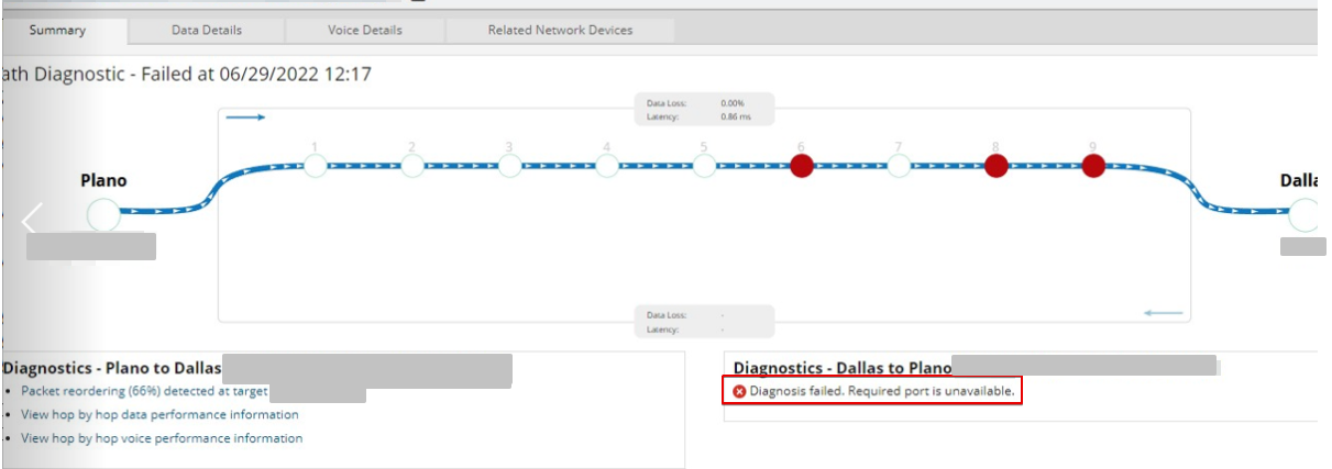 In-turn, return diagnostic will try to establish a connection using the same parameters, but as it is already using the port of 25000 for the continuous path monitoring, it cannot be used for to spin up for the return diagnostic.