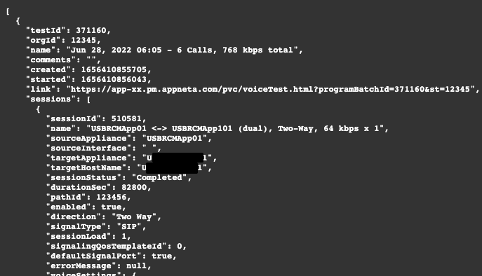 The AppNeta Swagger UI can be used to retrieve Voice Tests and Data