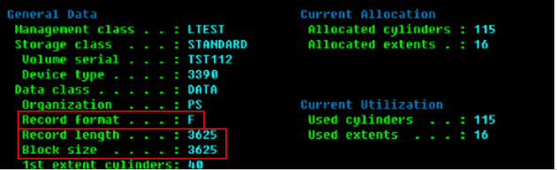 // DCB=(LRECL=205,RECFM=FBA,BLKSIZE=27880)