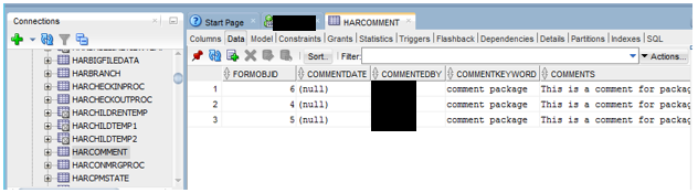 Checking the Oracle or SQL Server database to see the contents of this table, a row for each “instance” of this type of form will be listed there.