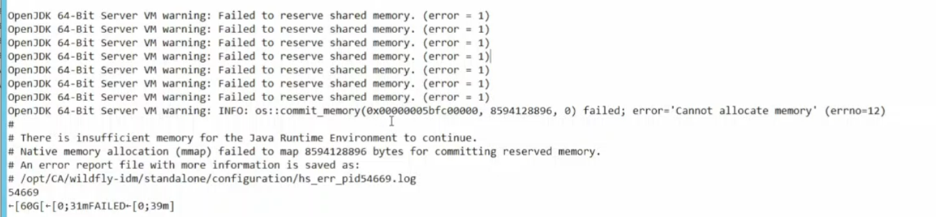 In /opt/CA/wildfly-idm/standalone/log/wildfly-console.log shows information like this: