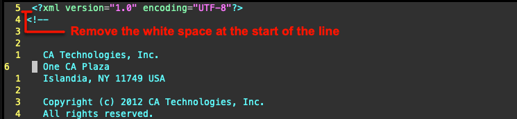 The xml definition must be on line 1 without any white spaces