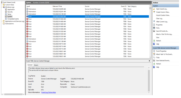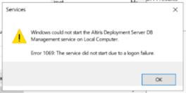Received message "Error 1069: The service did not start due to a login failure" in GSS due to the "Altiris Deployment Server DB Management" service failing to start: