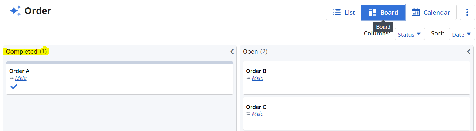 Smartlist - Board: When grouping columns by Status, the column order does not honor the Status lookup sort order. The expectation is to see Open column followed by Completed column but in some cases Completed column comes first.