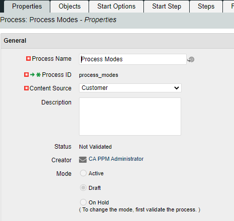 A process can be set to Active, Draft, or On Hold mode. What do each of these modes do to the process?