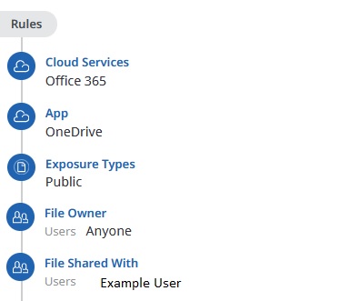 When this Share option is selected, CloudSOC does not evaluate the list of recipients. This means if a recipient is also specified in the Policy in addition to Exposure Type as Public, the recipient identity will be ignored and the Policy will not trigger.