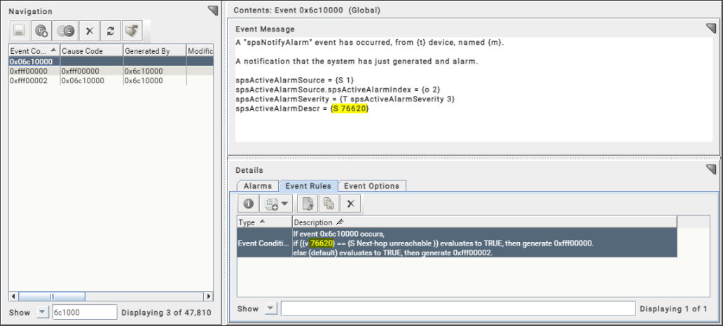 0x6c10000 E 20 R { 1 } CA.EventCondition, "({v 76620} == {S \"Next-hop unreachable\"})" , "0xfff00000 -:-","(default)" , "0xfff00002 -:-"0xfff00000 E 20 A { v 3 CA.spsActive },0xfff00000,10xfff00002 E 20 A { v 3 CA.spsActive },0x6c10000,1