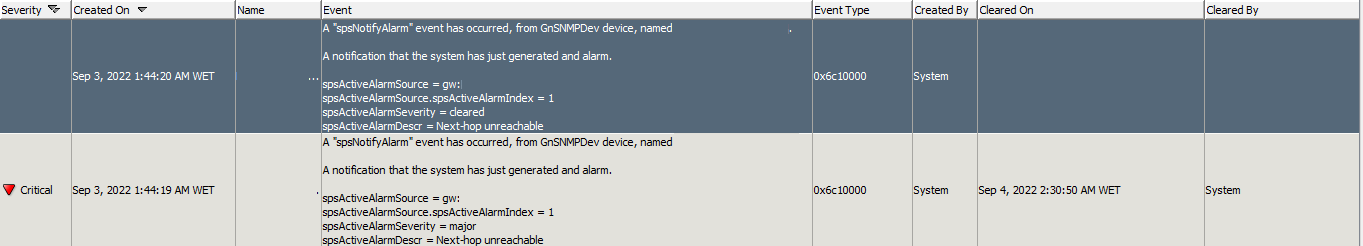 # spsNotifyAlarm spsActiveAlarmSource1.3.6.1.4.1.23867.4.1.6.1 0x06c10000 1.3.6.1.4.1.23867.3.1.1.2.1.1.6(1,2)\ # spsActiveAlarmSeverity 1.3.6.1.4.1.23867.3.1.1.2.1.1.3(3,0)\ # spsActiveAlarmDescr 1.3.6.1.4.1.23867.3.1.1.2.1.1.5(76620,0)