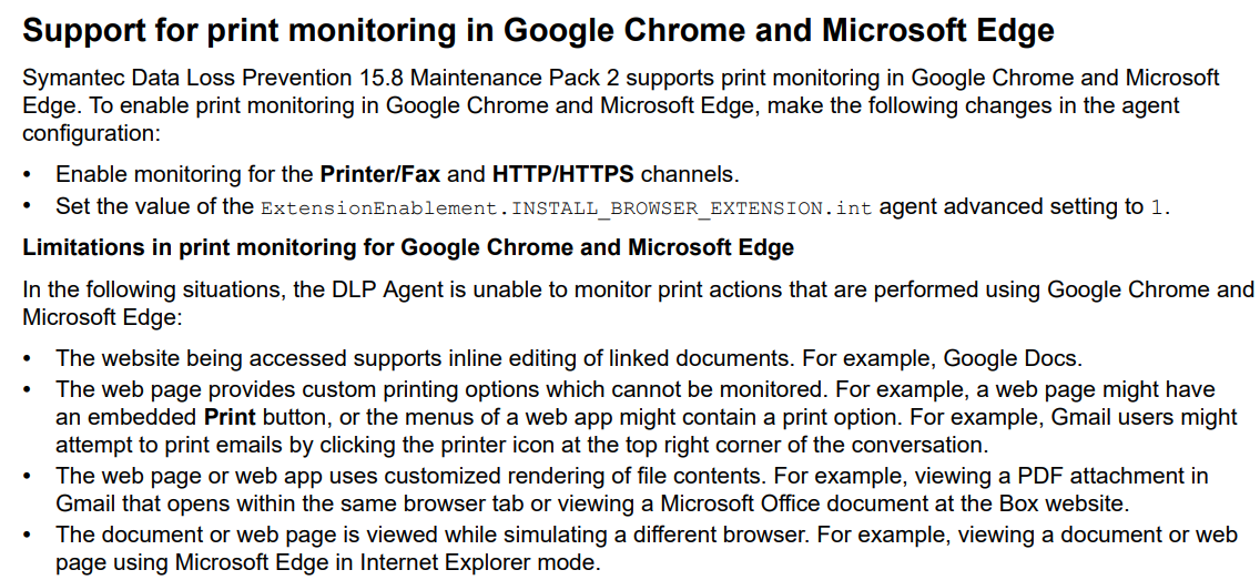 DLP fails to detect sensitive data sent to print when printing via an embedded print button in an application webpage opened in Chrome or Edge browser.