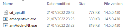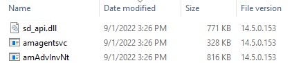 ITCM Agent was installed using Deployment Wizard on 1st September 2022 at 03:26. sd_api.dll, amagentsvc.exe and amAdvInvNT.exe have 9/1/2022 as modified date.