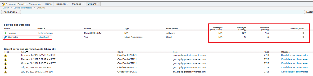 CloudSOC Operational Statistics do not report Message submitted, Incident Reported and Errors in Submission between CASB and the CDS (Cloud Detection Service).