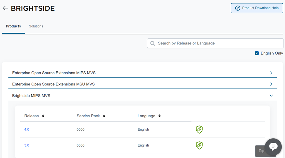 Login to Broadcom support website, and go to product download page, enter Brightside in the "search by product name" search box