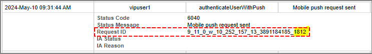 For customers using VIP Enterprise Gateway 9.11 and later the RADIUS validation server port is also appended onto the end of the Request ID. In the example below, the Request ID is 9_11_0_w_10_252_157_13_ 3891184185_1812. The 1812 indicates the request was received from a validation server running on UDP port 1812. This allows administrators to identify the IP address of the VIP Enterprise Gateway server, platform, and the specific RADIUS validation server the transaction was sent from. The second image is a screenshot of the source validation server.