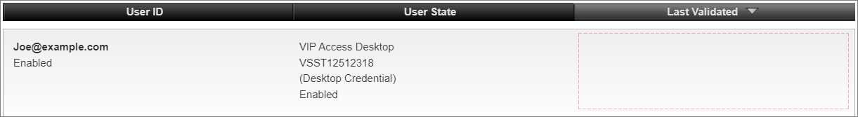 Users and credentials are 2 separate entities in VIP Manager. The 'last validated' value is the timestamp of the last validation. A blank 'last validated' value indicates no validation events have been recorded.
