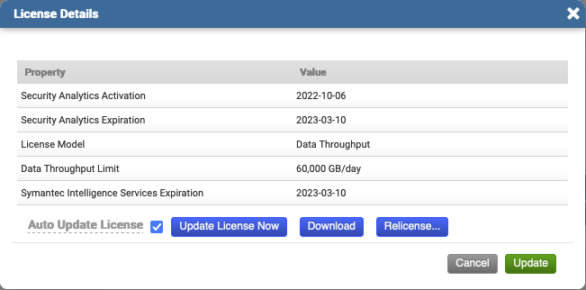For a Perpetual license, you will see a "Security Analytics Expiration" of Perpetual. See below for example.