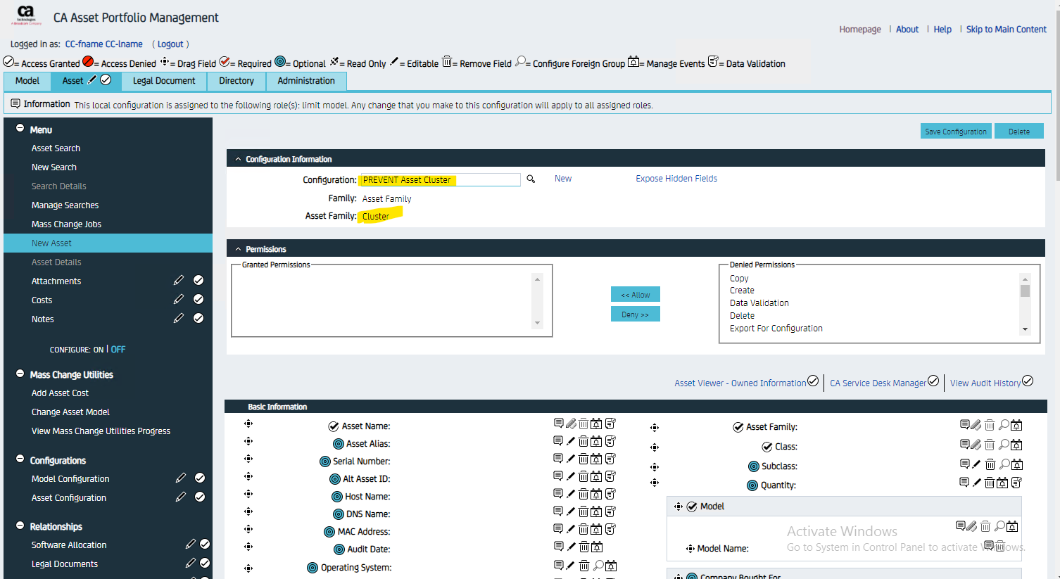 In this example, we will prevent the model and asset creations using Cluster Asset Family for user2 who is using “limit model” role.