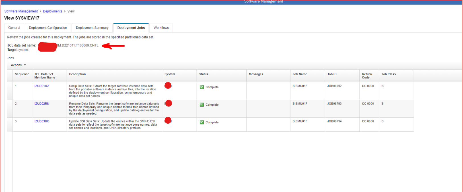 The PDS name that stores the deploy jobs can be found in z/OSMF UI under Software Management > Deployments > View, see screenshot below.