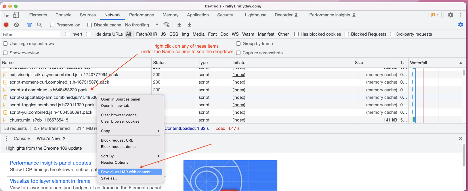 13. Save this with a name of something like "Rally-Custom-App" (the .har will automatically be added to the end) and send the file to us.