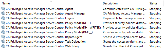 If the DMS service is stuck on Starting and the other services are Stopping, then the server needs to be rebooted in order for the services to be restarted properly as the DMS service is hung.