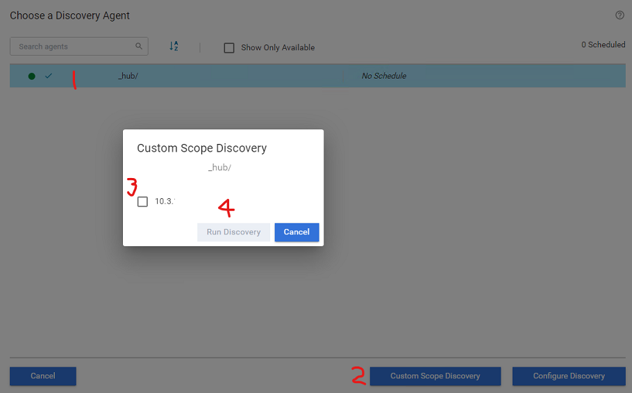 Note: If the IP is not yet under the discovery_agent, you will first need to Configure Discovery